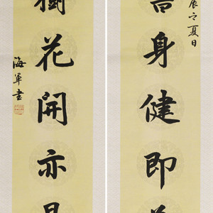 梁海军,男, 1981年生于陕西咸阳,幼承庭训,研习书艺,临池不辍。 楷书以颜、欧为基础,后又精习二王、米带、刘塘等行书法贴,隶书取法曹全,张迁等碑。多年来博览历代名帖,广研古今书理,真草隶篆皆通,尤以楷、行见长,经锲而不舍的追求和顽强刻苦的努力,其书法已逐渐形成自己的艺术风格。为人正直诚恳,淳朴友善,以碑帖为师,以书画会友。现为:中书协会员、陕西书画艺术研究院副院长、陕西长安书画家协会理事、陕西文盛书院院长。 作品在1999年迎澳门回归书法大赛”中荣获二等奖, 2000年入选香港举办\\\"中国当代美术书法精品展”, 2007年楷书《心经》入选\\\"中国书协全国干人干作书法展\\\", 2013年在“中国爱国书法名家香港交流展赛\\\"中荣获金, 2016年在第一届\\\"全国书法大赛”中荣获金奖, 2019年楷书作品应邀在\\\"光耀中华,协和万邦\\\"国际书画论坛暨书画巡展中展出。 作品曾在《中国书法报》、《陕西日报》、《书法导报》、《西部艺术报》等报刊发表,及受到陕西电视台等多家媒体采访报道,并被中国历史博物馆、全日书道教育协会、《中国当代书法名家精品集》、韩国艺术社等机构收藏。